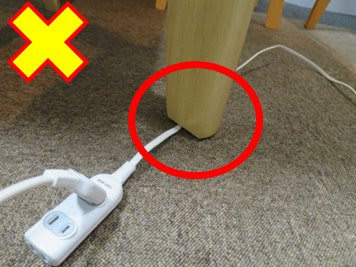 2、キャスター付きのイスを移動する場合など、電源コードを踏んだり、巻き込んだりしない。