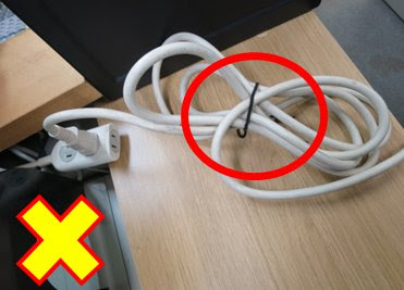 1、ACアダプタに電源ケーブルを巻きつけない。