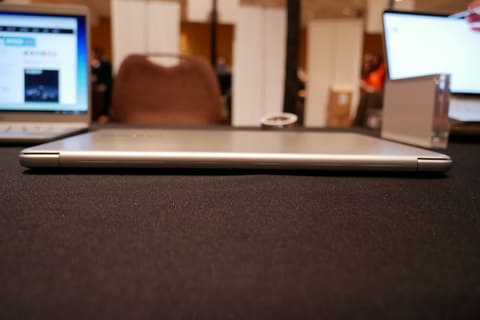 本体デザインは13.3型モデルとほぼ同じで、軽量マグネシウム合金”Metal12”の採用も同じ。筐体カラーはシルバー。ただし、15型液晶搭載のため、サイズは347.9×229.4×15.4mm(幅×奥行き×高さ)と13.3型モデルよりやや大きいが、それでもディスプレイは狭額縁仕様のため、15型液晶搭載ノートPCとしては十分にコンパクトだ。重量は1,250~1,290g。